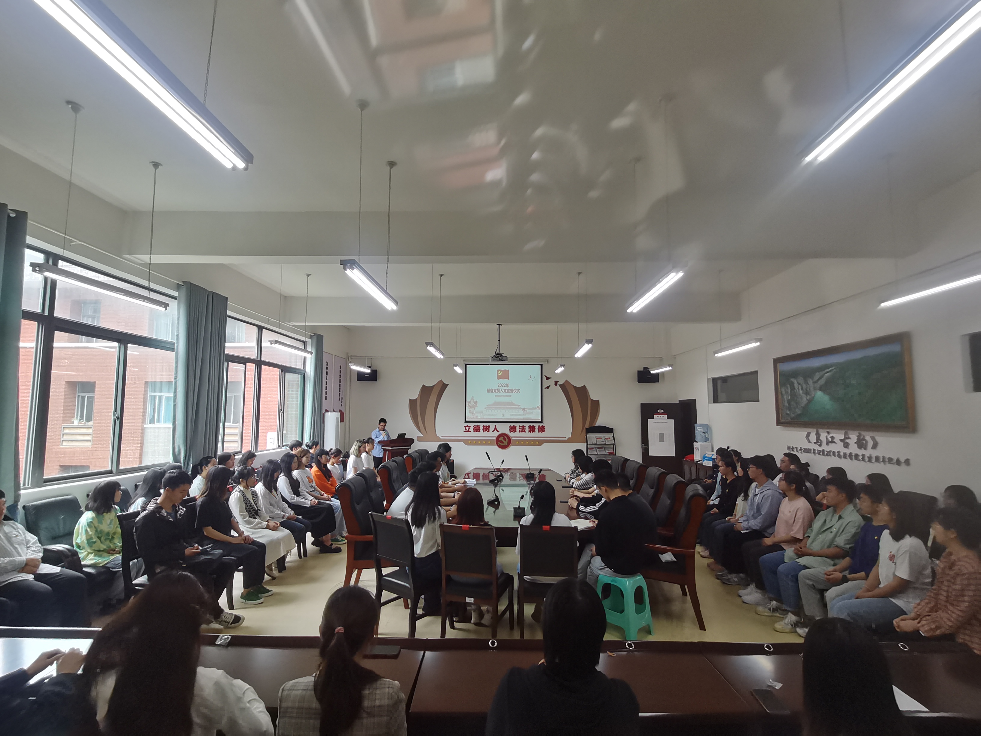 (首页 图文/报道 史剑侠)2022年6月17日中午,首页党委在文德楼(A8)310会议室开展首页新党员入党宣誓活动,首页党委书记詹伟领誓并讲话,首页副科级专职组织员莫丹洵主持,首页新党员代表共计70人参加活动。