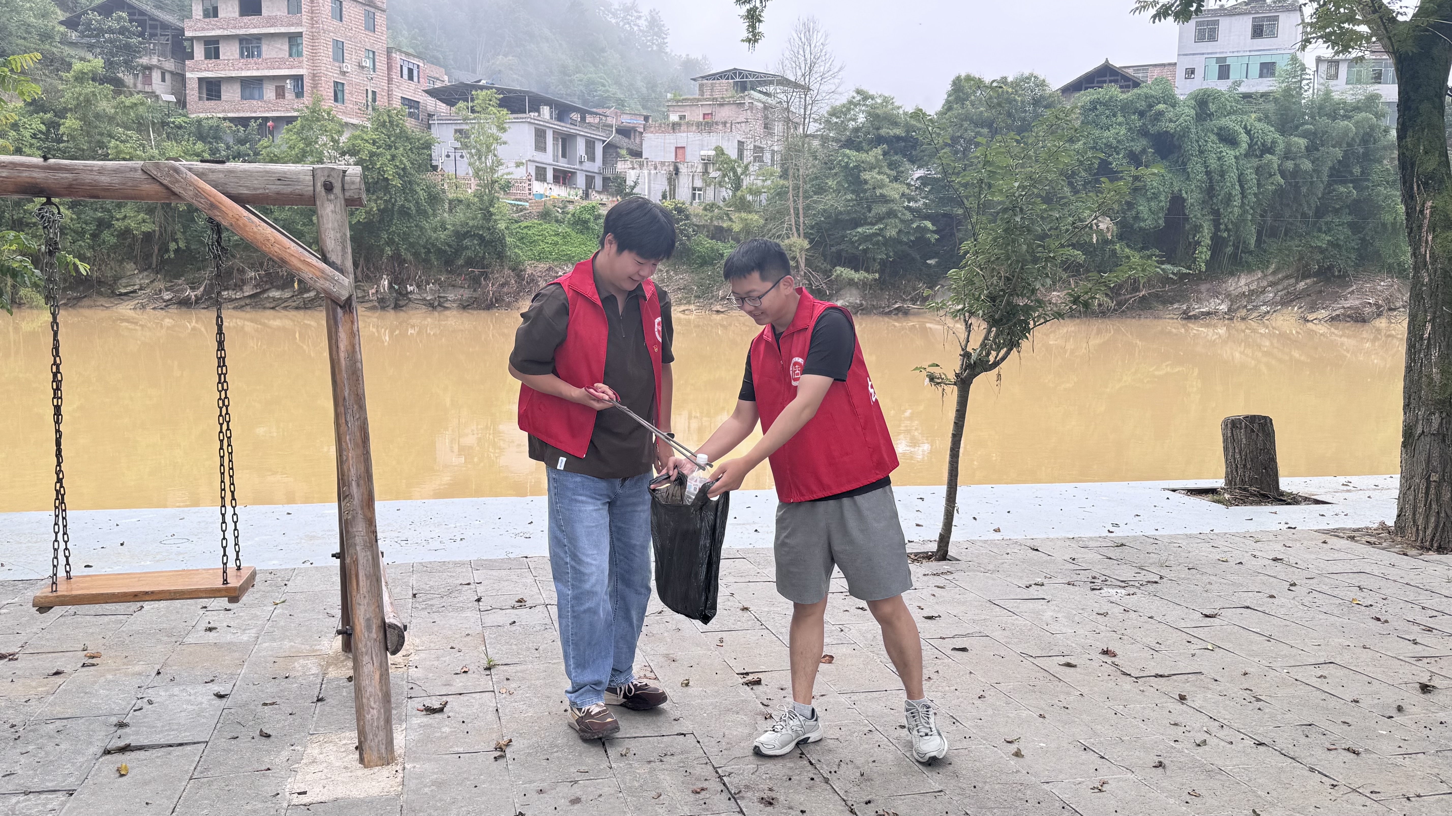 活动伊始,团队成员身着志愿红马甲,手持清洁工具,沿着施洞镇街道开展环境卫生清理工作。大家分工协作,仔细清理道路两旁、卫生死角的垃圾杂物,向商户和居民宣传环保知识,倡导文明健康的生活方式,用汗水为美丽乡村建设贡献力量。