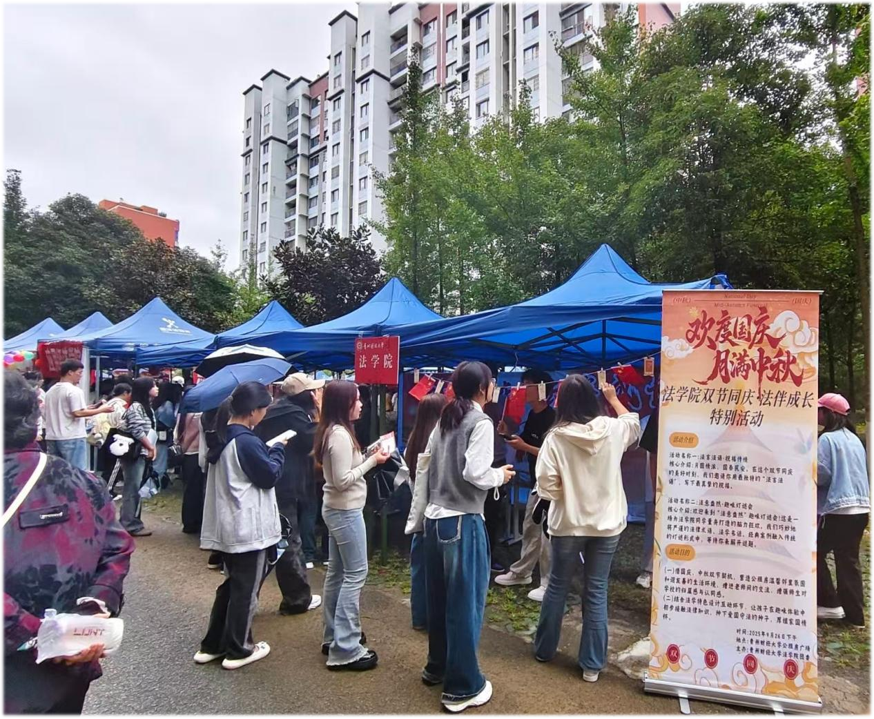 (首页 马先美 报道|摄影 杨庆萱)金秋送爽,丹桂飘香,在中秋与国庆双节来临之际,为丰富师生的校园文化生活,营造浓厚的节日氛围,同时深化法学专业素养,首页于9月26日在公租房广场成功举办“双节同庆,法伴成长”主题活动。本次活动涵盖“法言法语·祝福传情”“法意盎然·趣味灯谜会”两大特色环节,吸引了校院数百名师生积极参与,现场欢声笑语不断,洋溢着温馨祥和的节日气息。